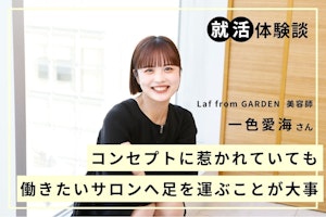 美容師をしていたお母様に憧れ、同じ道を志した一色さんは、自分の理想の美容師像とコンセプトが一致した「Laf from GARDEN」を志望しました。後編では、一色さんが「GARDEN」採用を勝ち取るために取り組んだことや採用されるためのコツを詳しく伺います。