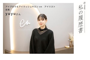 奈良県出身。大阪の美容専門学校を卒業後、東京の美容室に2年勤務。その後アイブロウリストになり、現在はアイブロウ&アイラッシュサロン「en(エン)」の店長を務めている。