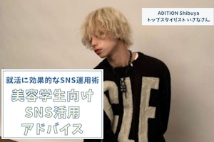 就活に効果的なSNSの活用法について、有識者へのインタビューを通して学ぶ本企画。前回に続き、美容学生時代からインフルエンサーとして人気を集め、美容師となった現在も多くのフォロワーに支持されている「ADITION Shibuya」トップスタイリストのいさなさんに、お話をお聞きします。