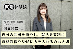 東京、横浜、名古屋、静岡で展開している大手ヘアサロン「FORTE」。現在「FORTE銀座」でスタイリストとして活躍しているのが、入社3年目の岡田玲奈さんです。前編では、美容師を目指そうと思ったきっかけや採用試験の内容を詳しく伺いました。