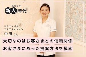 2店舗のエステサロンを経て、2016年に「ルミエ・パリ」に入社。技術とサービスにおいて高い評価を受けており、2023年には子育てのため時短勤務という立場ながら、店長の補佐役であるリーダーに抜擢される。