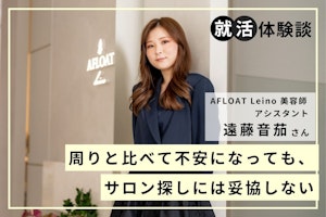 東京を中心に愛知、大阪にも店舗を展開している大手サロン「AFLOAT」。2023年に採用され、現在「AFLOAT Leino」でアシスタントとして日々努力し、社内でも若手のホープとして注目されているのが、遠藤音茄さんです。