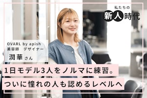 前半では念願のapishに入社が決まり、コロナ禍でも順調に技術を磨いていった様子をうかがいました。後編では、技術を磨いた具体的な方法、女性のヘアアレンジに魅力を感じていたのにメンズサロンへの異動を受け入れた理由などをご紹介します。