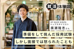 そんな廣瀬さんは、第一志望のサロンには落ちてしまい、学校の先生からの紹介で「Of HAIR」と出合います。努力を重ね、ひたむきに技術を磨いてきた自分にぴったりのサロンだと感じ、採用試験に進んだそうです。面接では代表の古里さんに怒られたことも…? 自身の就活について振り返っていただきました。