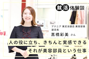 就職活動を始めたとき、とくにこのブランドがいいという思いはなかったので、インターネットで美容部員の仕事を探していました。そのときに「アテニア」の存在を知り、いくつか魅力に感じるポイントがあったんです。