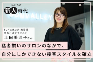 デビュー後の1年ほどはなかなかお客様がつかず、自信を失うことも多かったという土田さん。そんなときに意識したのが、自分にしかできない接客のスタイルを見つけること。女性スタイリストが少ない「SUNVALLEY」のなかで、やわらかな接客スタイルを確立し、徐々にお客様をつけることができるようになったといいます。