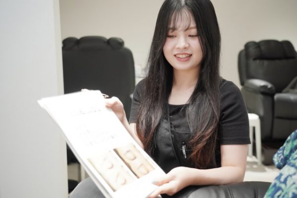 ひたすら練習することと、あとはお客様が喜んでくれているのが分かると自信につながりました。その場で仕上がりに満足いただけたときも嬉しいのですが、「前回すごく持ちが良かったからもう一回お願いしたい」と指名で次回来店していただけると、続けていてよかったなと思えました。