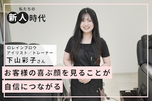 2021年天王寺店を皮切りにわずか3年で100店舗以上に急成長中のアイサロン、ロレインブロウ。下山彩子さんは、現在関東エリア約50店舗150人以上のスタッフの教育にあたるトレーナーです。