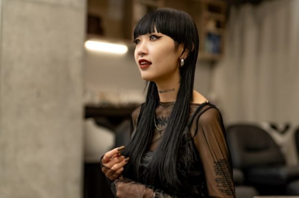 タトゥーを入れたり、黒髪のロングにしたり、色の濃いリップをしたり、グレーのカラコンをしたりと、自分の好きな恰好を追求していたら、それが私自身の名刺代わりのようになっていったんです。