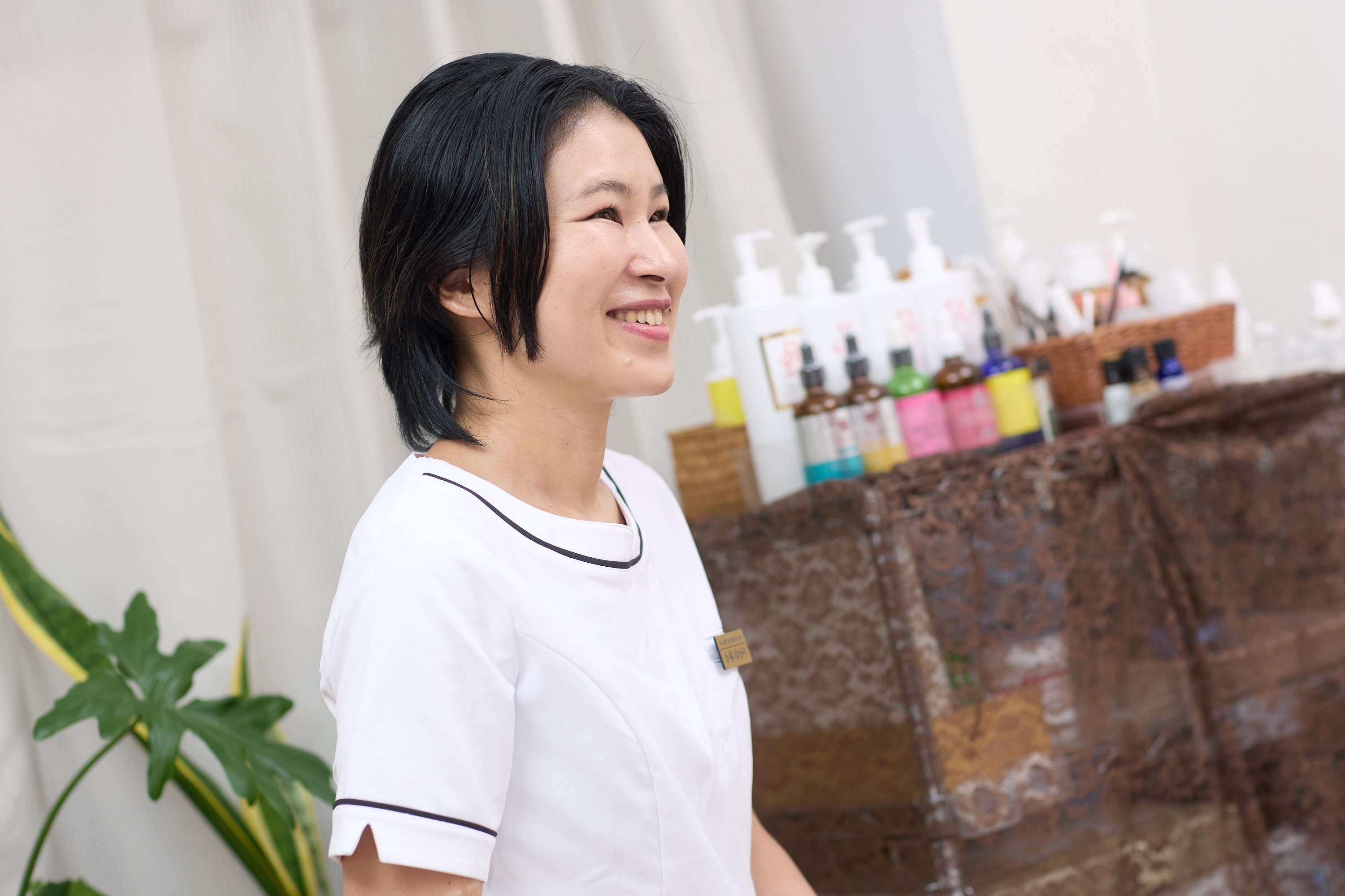 施術前後のもてなしはフロントの方が担当されていましたが、施術中はエステティシャンとお客様との1対1の環境。お客様とのコミュニケーションには特に気を配り、こまやかな声掛けを心がけていました。たくさんのお客様のお肌やお身体を任せていただく日々の中で、学んだこともたくさんありましたね。