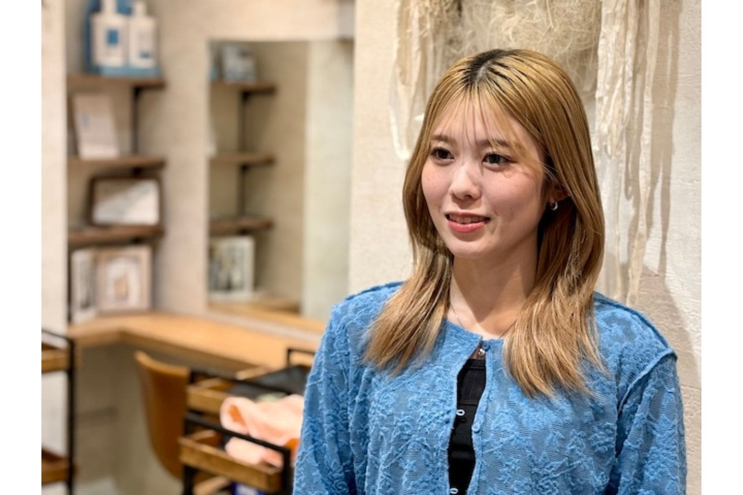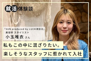 学生時代、髪のクセに悩んでいたという小玉さん。美容師として働く叔母に縮毛矯正をしてもらい、感動したことで美容師の仕事に興味を持ったといいます。「L’sグループ」とは、美容学生時代に参加した就職ガイダンスで出合い、スタッフの親切な対応に惹かれて応募を決めたそうです。