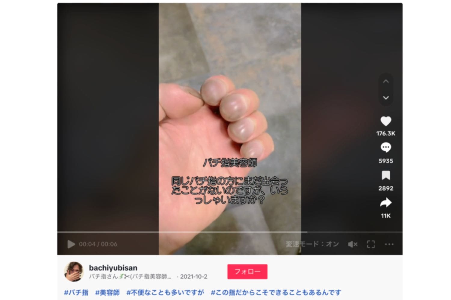 「僕と同じ指の人はいますか?」と、問いを投げかけている内容の動画でした。