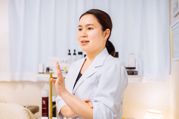 スタッフにノルマを課すところが多いんですよ。でも先生のところでは、化粧品やチケットを無理に販売させることはまったくありません。売上を無理につくらせるより、お客さまのことを優先しているんですよね。お客さまだって、無理に勧められたら嫌な気持ちになりますよね。本当に「いい」と思ったら、無理に勧めなくても化粧品をお求めになるし、コースを継続してくださいます。
