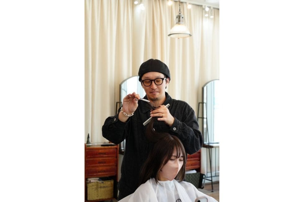 美容師歴は今年で13年目。店長就任後、3年前にエリアマネージャーに抜擢され、採用の担当に。顔や骨格に合わせたカットが人気で、予約サイトの口コミ数は高評価の声多数。