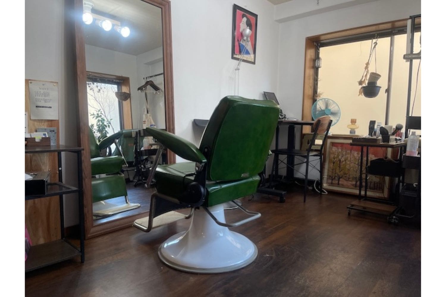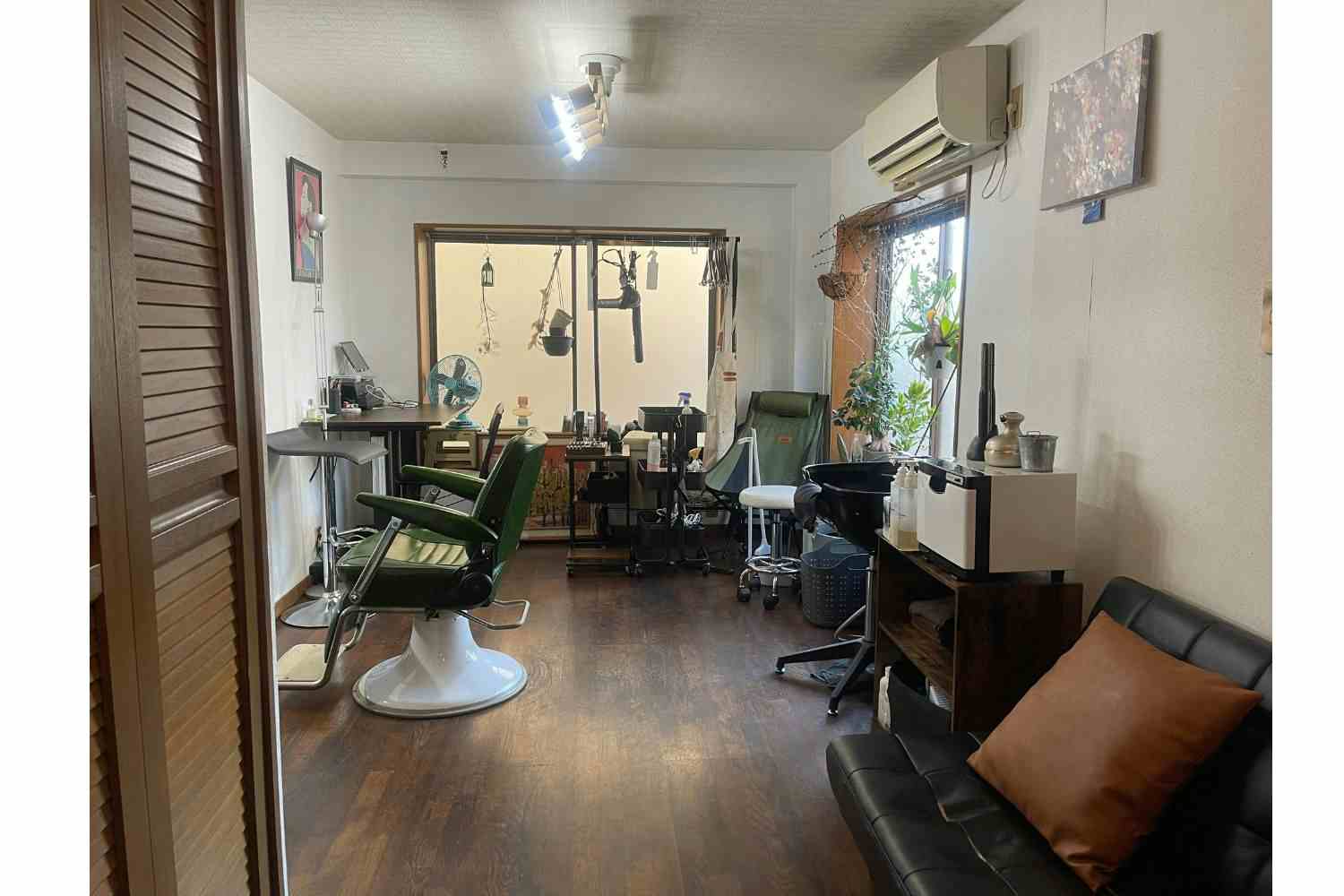 祐天寺のサロンを辞めることになり、ここをサロンにしたいと思って調べたら、営業するために必要な広さがギリギリ足りていたんですよ。それで、シャンプー台も工事をしなくて済む可動式のものを見つけて、カット椅子や仕切り、蓋つきのゴミ箱など必要なものを揃えました。