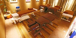 落ち着いた雰囲気の店内には多くの施術ベッドが並びます。お客様に対しても極上の時間をお届けする店内の作りとなっています。