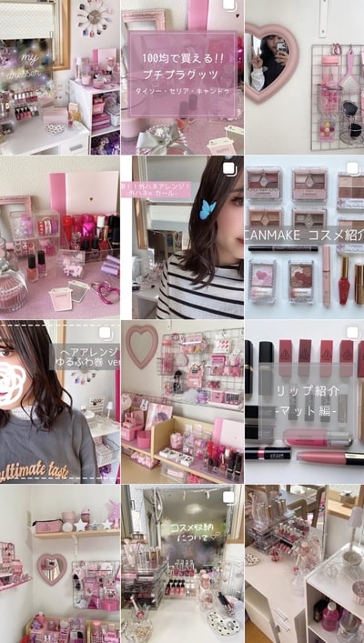 最初は部屋に置く雑貨や小物がメインでしたが、「可愛い」の幅が「コスメ」にも広がり、一部のフォロワーから「メイク動画も見たい」とコメントをいただいたことで、メイク動画を載せるようになりました。