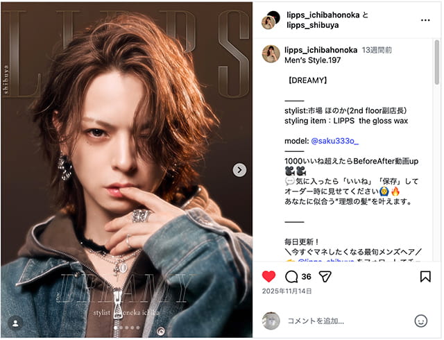 全員チェックするわけではありませんが、例えば面談の時に「強みは何ですか?」と言われた時、SNSを強みにして「フォロワーが0人から何人になりました」と見せてくれる学生さんもいて。そういうのを見せてもらうと初対面でも「すごいな」と興味が湧きますし、自分をアピールする良い方法ではあるかなと思います。LIPPS hairを志望する子は、やはりメンズスタイルを上げている子が多いですね。