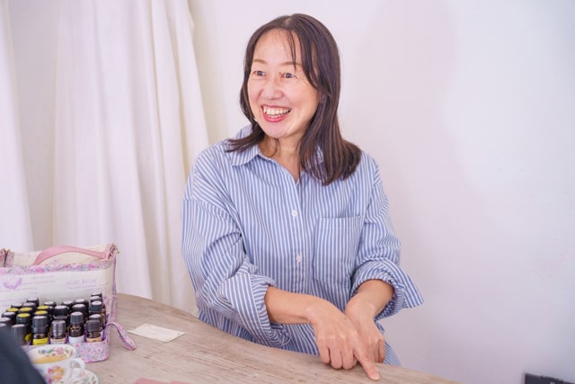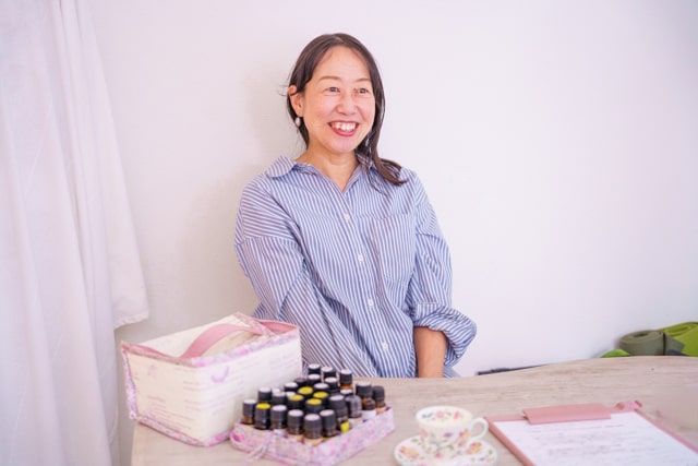 内科では肩こり、メンタル不調、帯状疱疹などいろんな患者さんがいて、ドクターがこの人にはアロマがいいという方に声をかけてくれました。帯状疱疹のピリピリした痛みが消えない患者さんにティートゥリーを塗布したり。その内科にはアロマの日が週3回あって、おひとり約30分と施術時間は短いのですが、1日7名くらいの患者さんがいたので、それをスタッフ3人で分担していました。