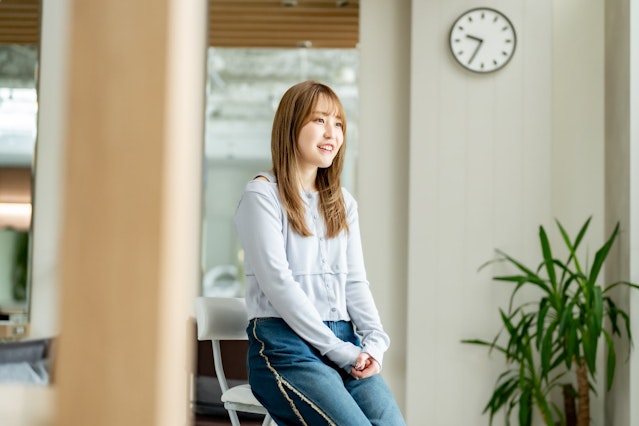 この会社はバリバリ働くことも、家庭やプライベートを大切にすることもどちらも可能で、お子さんを育てながら働いているスタッフもいると聞いて。次に働くサロンでは長く働きたいと思っていました。将来的には結婚や出産も経験し、そのあとも美容師として働けたらと思っていたので、その点も魅力に感じました。
