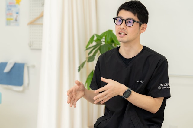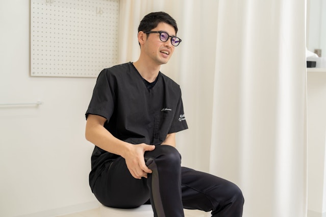 圧倒的な知識量と、痛みの原因を徹底的に探るアプローチに触れ、「自分はまだまだだ」と強い衝撃を受けたという天野さん。その後、アルバイトを経て「Roots」へ転職し、これまでの理学療法士の経験も生かしながら、日々お客様と向き合っています。