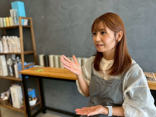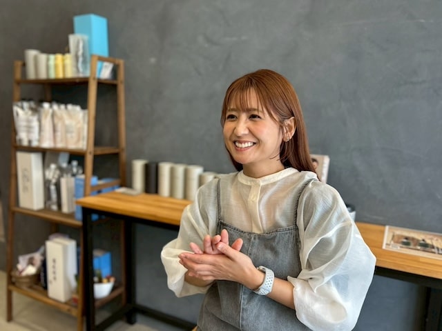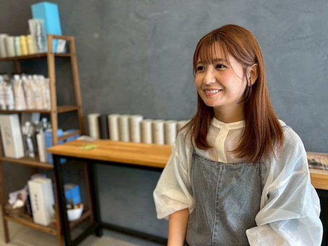 和テイストの落ち着いた空間で、マンツーマンで施術を行うサロン「髪屋こころ」。埼玉県内に2店舗展開しており、浦和美園店でスタイリストとして働いているのが小島千春さんです。
