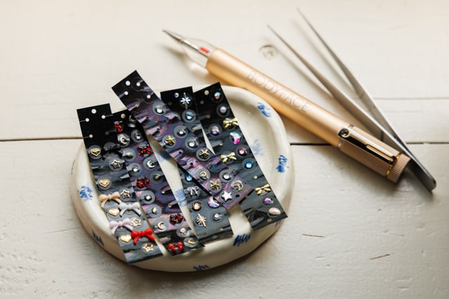 美容師の仕事もやりつつ、時間調整がしやすい働き方になったので、耳ツボやボディジュエリーも昼間にスクールに通って技術をしっかり学びました。デザインを考えたり、素材を集めたり、あとは練習も重ねて。