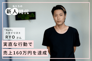後編では、新人時代のRYOさんの挑戦についてお話しを伺います。ジュニアスタイリストとして入社したRYOさんは、ハイレベルな「Null」のスタッフについていこうと必死だったといいます。とくに苦しんだのは、ジュニアスタイリストからスタイリストへ昇格するまでの間。なかなかお客様がつかず、思うように売上を伸ばせなかったといいます。