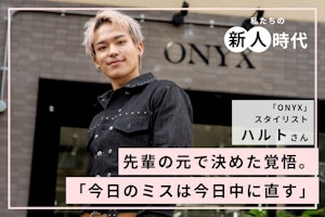 今回ご登場いただくのは、「ONYX」へ2025年に中途入社を果たしたスタイリストのハルトさん。複雑履歴のハイトーンを得意とし、注目を集めるスタイリストのひとりです。