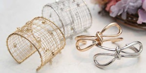 「こちらは『Dear Devil mini』というブランドで、展示会でリボンバングルに一目惚れ。メッシュバングルの方は小さな星がたくさんついていて、パッと見綺麗めだけれど遊び心のあるデザインがお気に入りです。2種類ともドレスやワンピースなどに合わせると華やかで可愛いと思います」