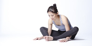 足を伸ばして床に座ります。