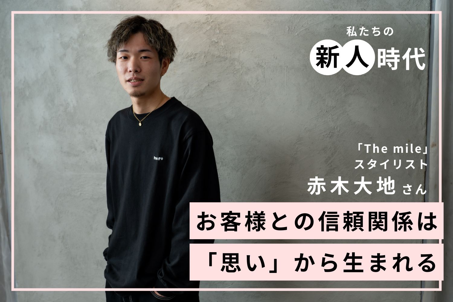 今回お話しを伺うのは美容師歴6年、入社2年目となる、「The mile」スタイリストの赤木大地さんです。前編では赤木さんが1社目のサロンで経験した新人時代について伺いました。