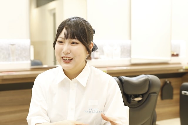 サロン見学をするまで「山崎伊久江美容室」ともう1社で迷っていたんです。長い歴史を持つ「山崎伊久江美容室」に対し、もう一方はSNS集客に特化したサロンでした。インスタに1日何本もリール動画を投稿しなければいけないという話をスタッフから聞いて、サロンワークに集中したいと思ったため「山崎伊久江美容室」を選んだんです。