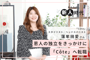 後編では「Côte」に就職してからのキャリアについて伺います。スタイリストとして働く傍ら、ヘッドスパニストとしても活躍している蒲牟田愛さん。ヘッドスパは施術のなかで器具を使わない唯一のメニューになるため、お客様の気持ちにより深く寄り添えると思い、技術を学び始めたそうです。