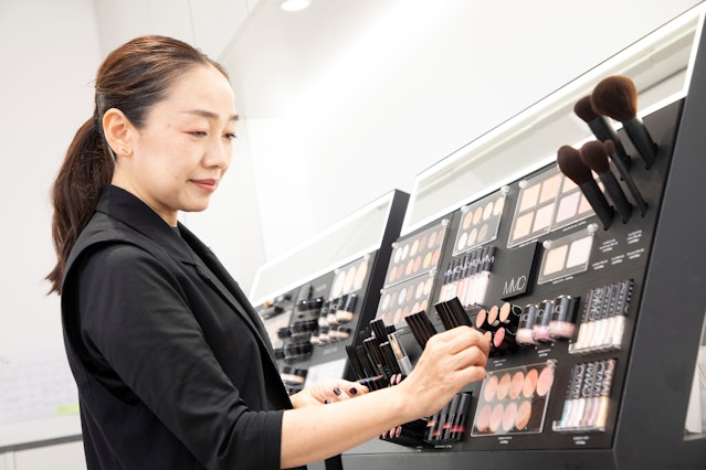 その後は本社勤務になり、スーパーバイザー、メイクアップアーティスト、トレーナーの3つの役職を兼任。関東エリアの店舗を担当しながら、全国でスキンケアの研修も実施しました。