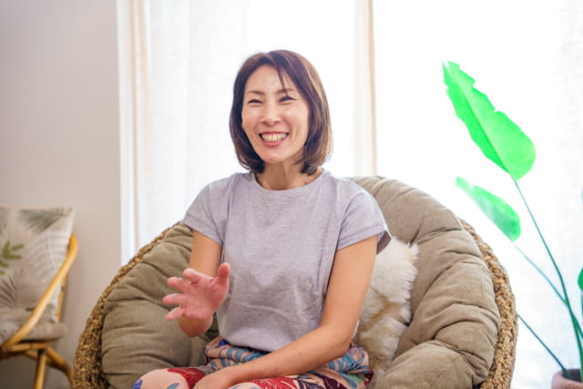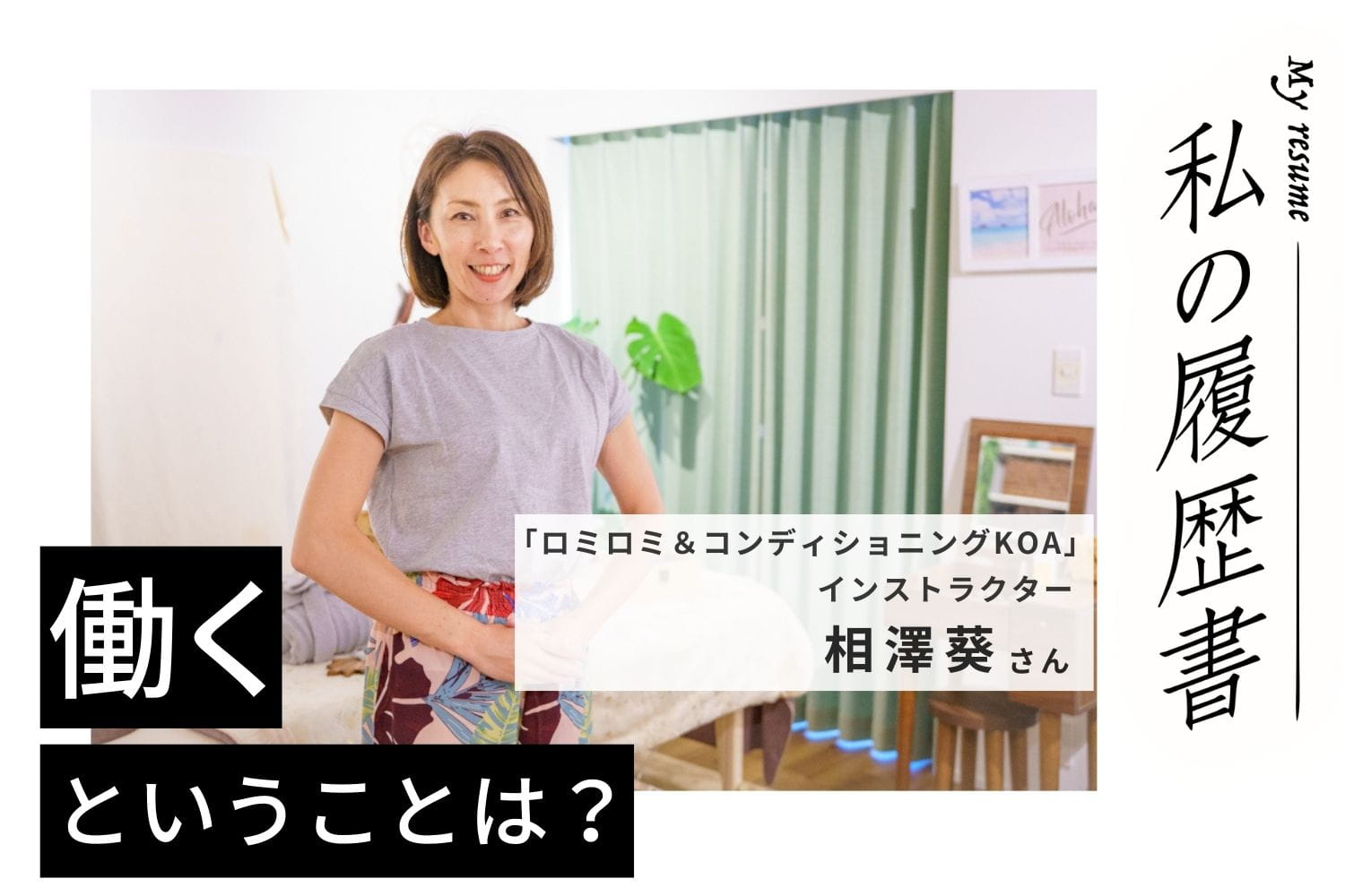 ロミロミ&コンディショニングKOA主宰の相澤葵さん。前編では、フィットネスクラブ入社1年目で前年比売上200%超の功績を挙げたこと、フィットネスクラブ時代の先輩との起業、辛かった育児経験からほっとできる場所を提供したいとサロンオープンしたことを伺いました。