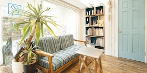 「サーフィンや海が好きなので、さまざまなブルーを使っています。木を使っている部分もかすれ具合にこだわったり、ウェイティングスペースのソファも、セットチェアも値段が高いものなので、予定よりも内装費はかかりました。ベランダの床は自分でやすりをかけたり、DIYをした部分もあるんですが。それで、店名の『Raguna』はカルフォルニアのラグナビーチからとった名前ですが、いつか社員旅行で行きたいと思っているんですよね。」