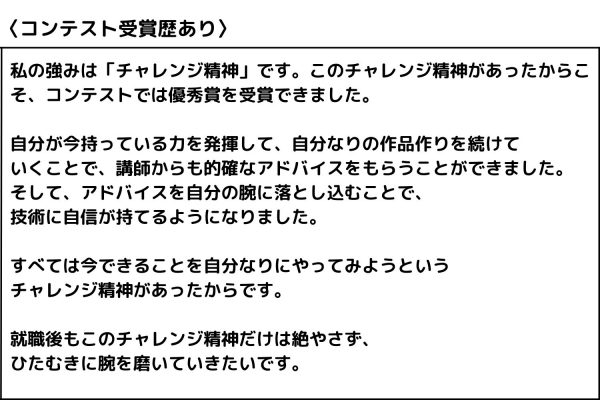受賞歴や資格取得をアピールしたい方は、次の例文を参考にしてください。