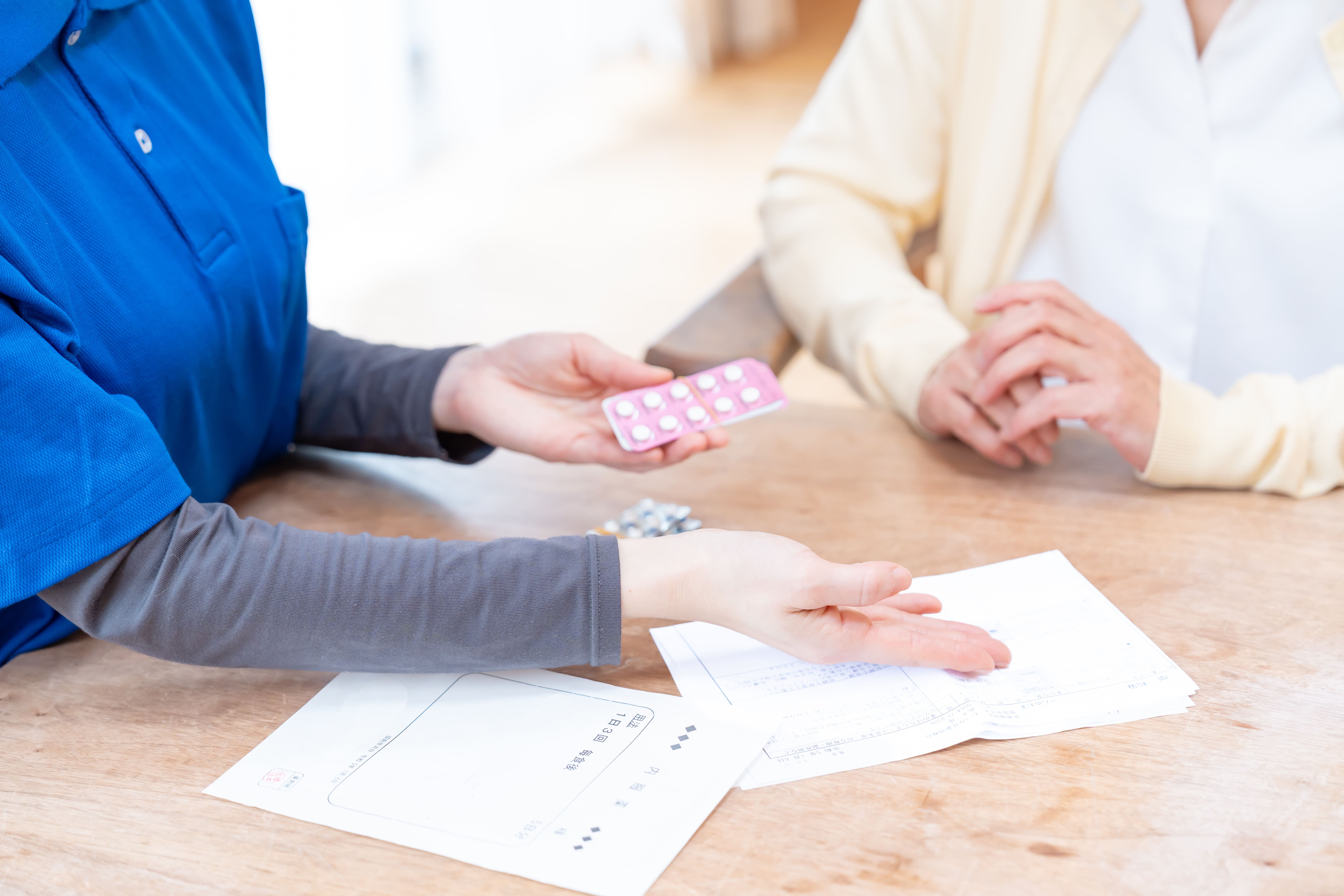 訪問時に残薬を確認し、使用可能なものは再利用するように医師へ調整(残薬調整)を行います。