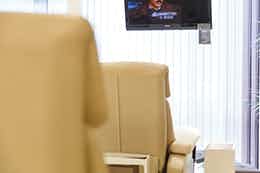 「女性にとってネイルは特別なものだと思うんですね。仕事をして、子育てをして、さらに家事もして……と、慌ただしく時間が過ぎていくなかで、サロンに来られたときだけは非日常的な空間を味わっていただきたいと考えました。そのために、たとえば店内の椅子はほぼフルフラットになる大型ソファにしています。このお店をオープンした10年前は対面式のネイルサロンが多かったのですが、それだと足とぶつかってしまいますし、真正面からスタッフと向き合った状態だとお客さまが緊張されてしまいます。だからこのお店ではお客さまはソファに横になっていただいて、スタッフはその側に寄り添うという形にしました。そうすると視線もずれますから、とてもリラックスしていただけます。さらに室内の照明もリラックスできるようオレンジ色のやわらかい光にしつつ、施術に支障がないよう、手元の照明はしっかりしたものを別に用意しています」