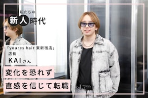 今回は、「youres hair 東新宿店」で店長として働く、入社5年目のKAIさんにインタビュー。前編では美容学生時代や最初に入社したサロンでの経験などについてお聞きしました。