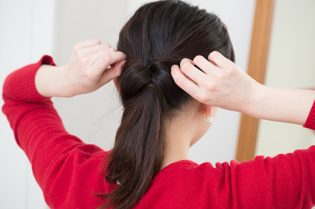 1つめの手順で結ぶ位置によっても印象が異なります。低めの位置は大人な印象に、高めの位置は元気な印象に仕上がるでしょう。