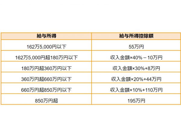 給与所得に対する経費(給与所得控除)は、収入によって変動します。以下の表を参考にしてください。