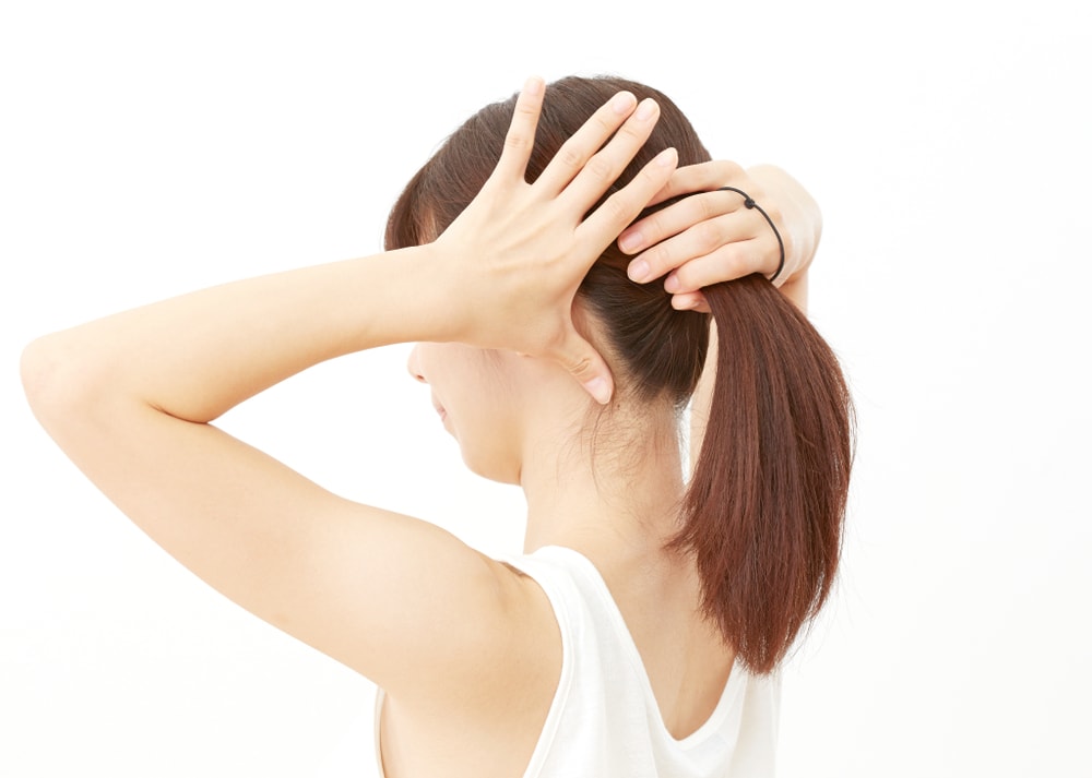 1.髪の毛を好みの位置でまとめて結ぶ。