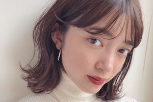 カジュアルでありながら、女性らしさの雰囲気が残っているシースルーバングです。外はねのロブとシースルーのバングを組み合わせたところがポイントです。