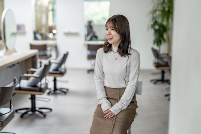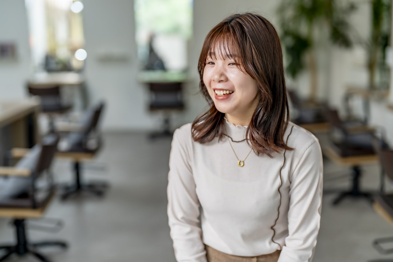 新卒で入社したのはヘアケアに力を入れる美容室。そこで経験を積みますが、なかなか新人へのチャンスがまわってこなかったため、今の会社への転職を決意したといいます。