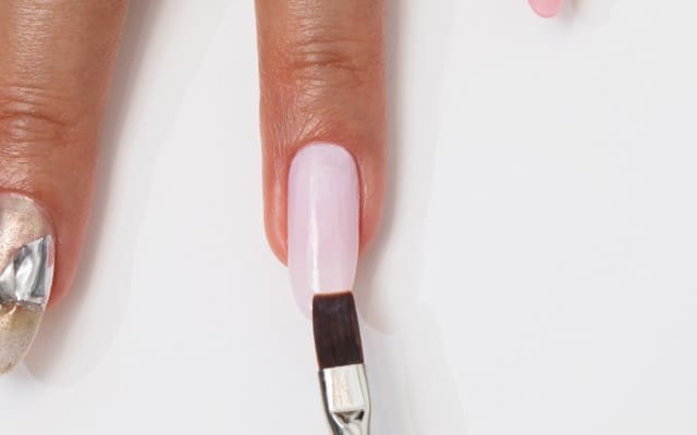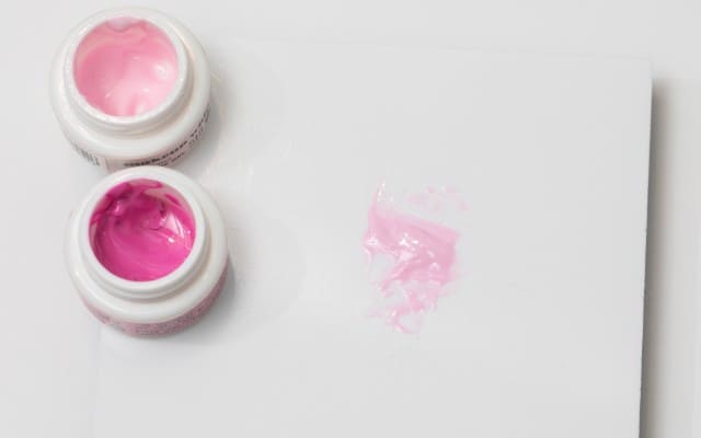 濃いピンクと薄いピンクのジェルカラーを混ぜ合わせ、好みの色にカスタマイズする。