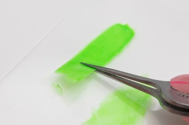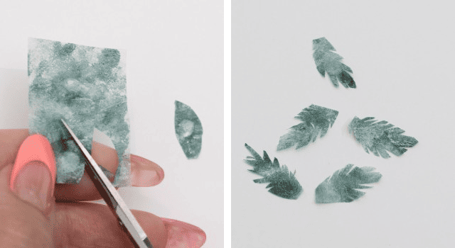 固めたジェルシートを葉っぱの形にカット。ハサミの先端を使い、切り込みを入れると、南国の葉っぱ感が出る。