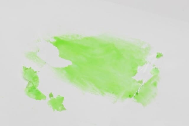 1枚に割いたティッシュペーパーをのせ、上からブラシクリーナーで緑をぼかしていく。
