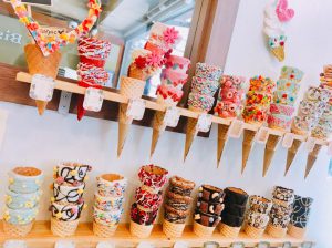 まずは、インスタ映え抜群のかわいいアイスクリーム店へ。豊富な種類のコーンやトッピングの中からセルフで好きなものをカスタマイズ。自分だけのオリジナルアイスクリームが作れて、とても楽しかったです」
